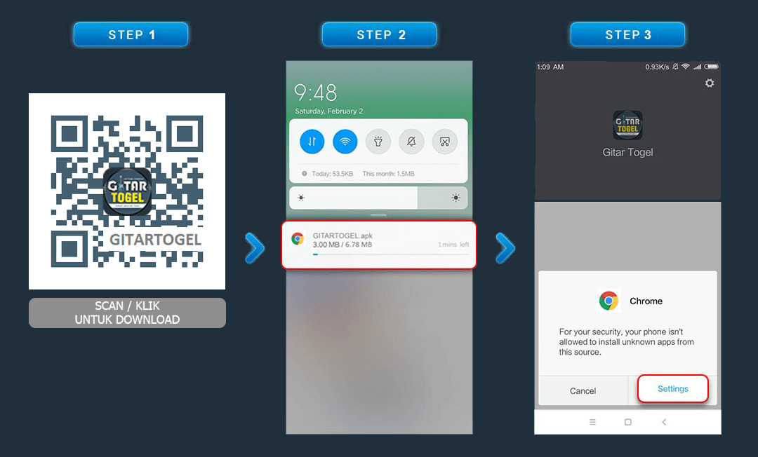 Berikut ini adalah cara download aplikasi android GITARTOGEL pada handphone android anda :